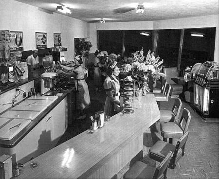 The photo below shows the interior of the Cross Roads when it opened in early 1952 in the building that 1950s' Santa Cruz teens want to save. The name of the waitress at the counter is unknown but Louise Klempnauer is pumping a soda handle and directly across from her in the kitchen is Leonard Klempnauer. Next to him, a little to the left in the photo, is night manager and cook Marvin White, who lives in Aptos, Calif., in Santa Cruz County. The waitress in the background is Katy Braga.
